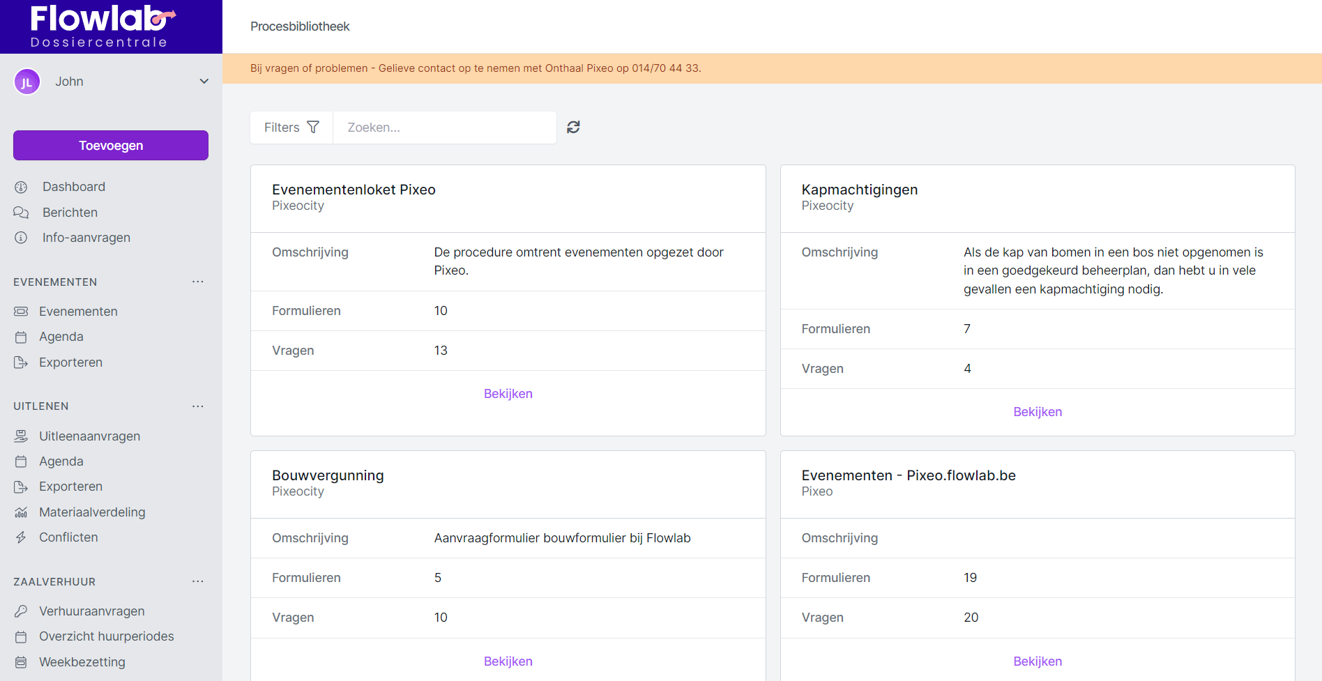 Als je graag een bepaalde dossierstroom overneemt, kan je dat aan Pixeo/Flowlab laten weten via support@flowlab.be, dan brengen wij dit achter de schermen in orde.