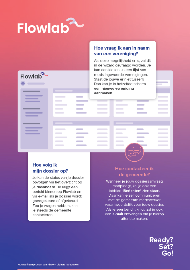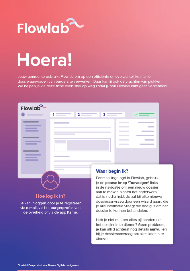 Om de burger op weg te helpen met zijn aanvraag, voorzien we vanuit Flowlab graag een infofiche met een beknopt stappenplan om de aanvraag makkelijk te doorlopen.